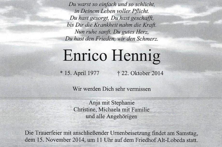 Heute erhielten wir die traurige Nachricht über den Tod unseres geschätzten Mitarbeiters Enrico Hennig. Mit noch