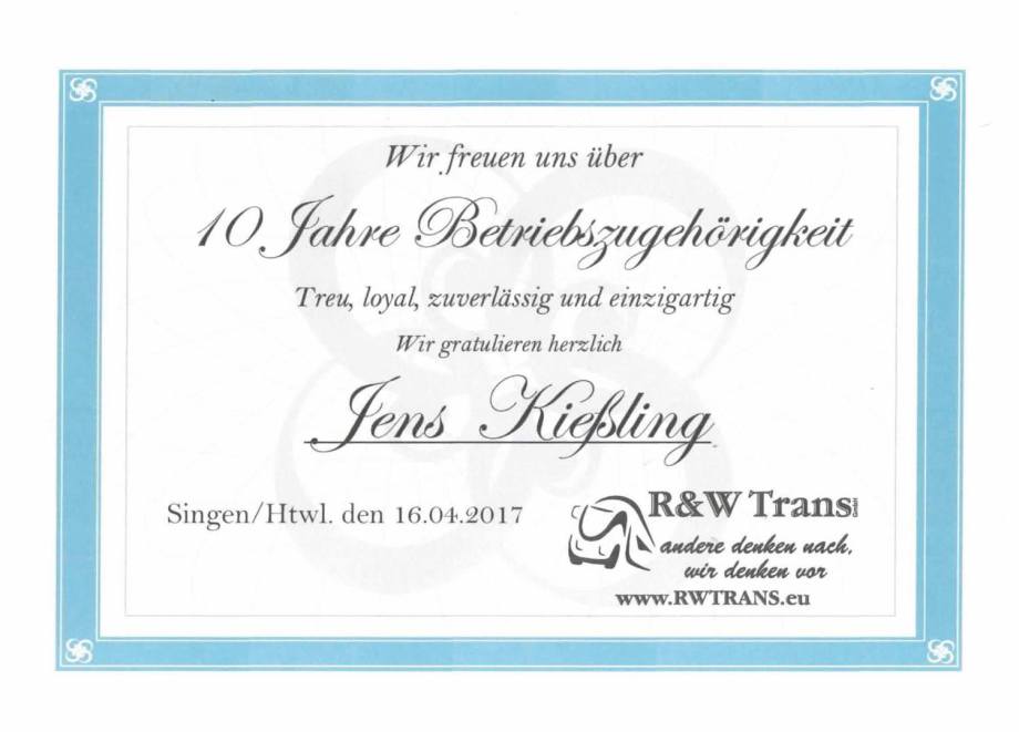 10-jährigen Betriebszugehörigkeit zu gratulieren